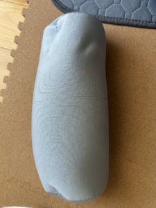 ボルスタータイプの抱き枕にタオルを巻いて跨りやすい様に紐で2カ所縛っています。