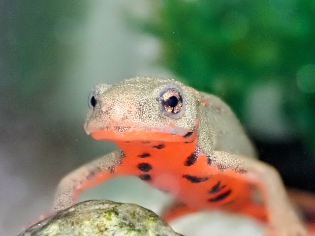 お腹の赤色は警告色(警戒色)であるといわれています。実際、アカハライモリは微量ではありますが、フグなどと同じテトロドトキシンと呼ばれる毒をもっています。