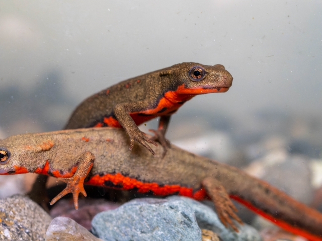 諸説ありますが、アカハライモリなどの「イモリ」の語源は、井戸を守る「井守」からきているといわれています。古くから、人間の生活圏で見られるとても身近な生き物でした。