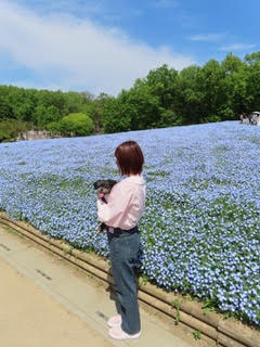 見渡す限りの青い景色は圧巻で、愛犬との写真撮影にもぴったりでした。